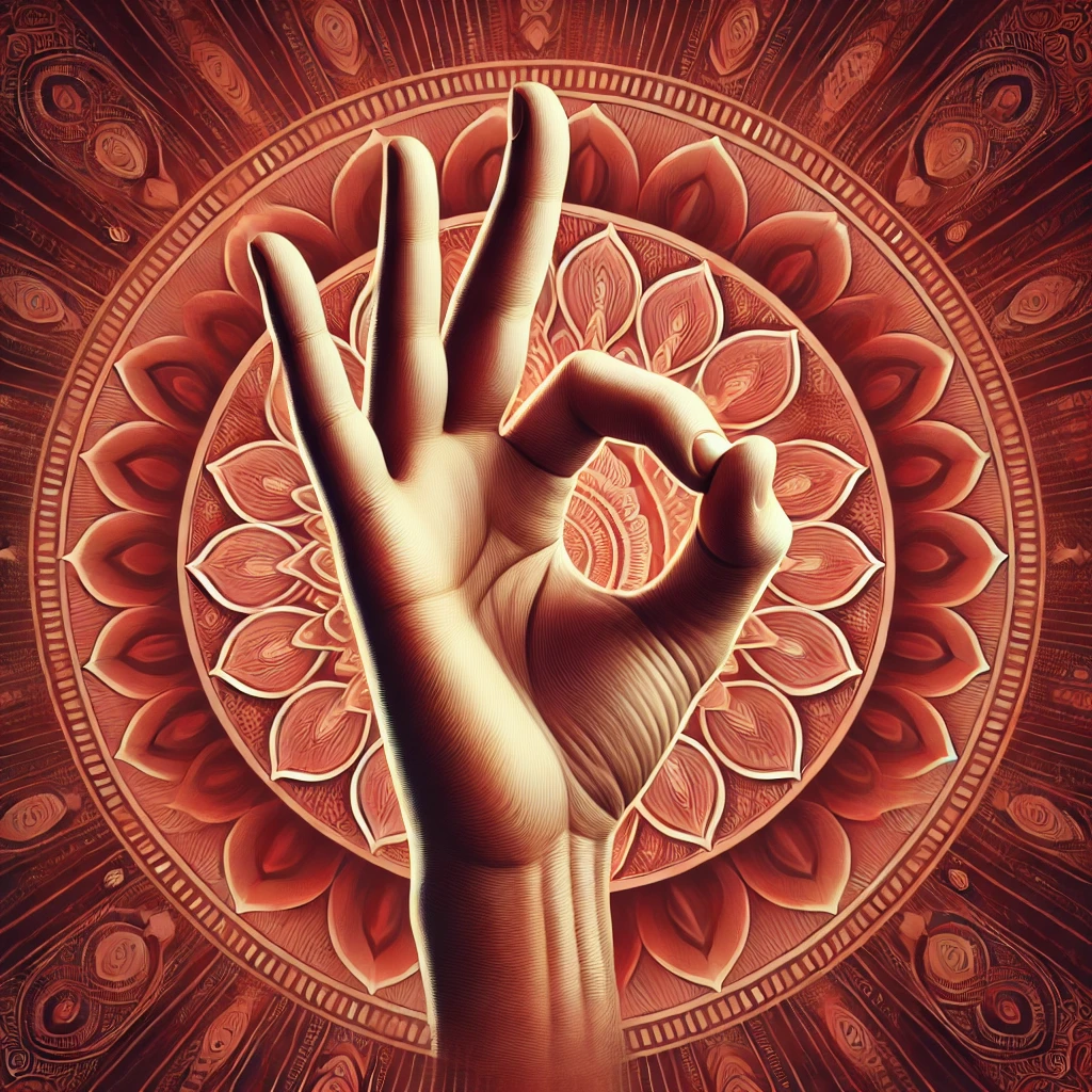 Description: This mudra grounds you to the Earth element and enhances stability. To perform, bring the tip of your thumb and index finger together to form a circle while keeping the other fingers extended. Perform this with both hands to feel grounded and balanced.
